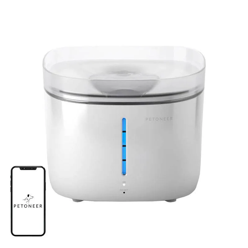 Seade annab mobiilirakendusse märku, kui filter vajab vahetust või veetase on liiga madal. LED-indikaator pakub visuaalset vihjet. Petoneeri rakenduse kaudu saad veedosaatorit juhtida kaugelt. Toetatud on Amazon Alexa häältugi ning ühilduvus TUYA platvormiga.