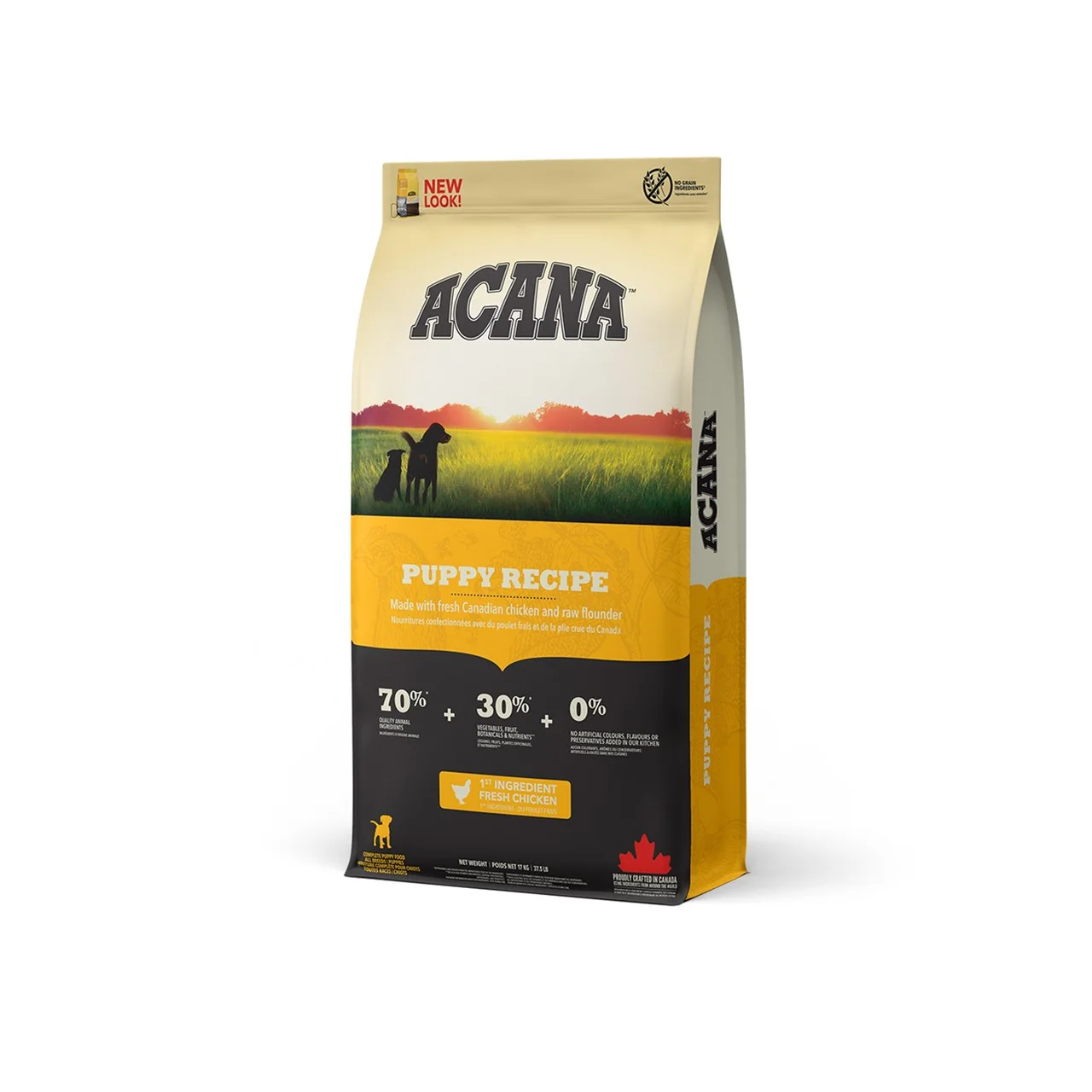 - Kõrge loomse valgu sisaldus – proteiin 33%, sobib aktiivse kasvuga kutsikatele.