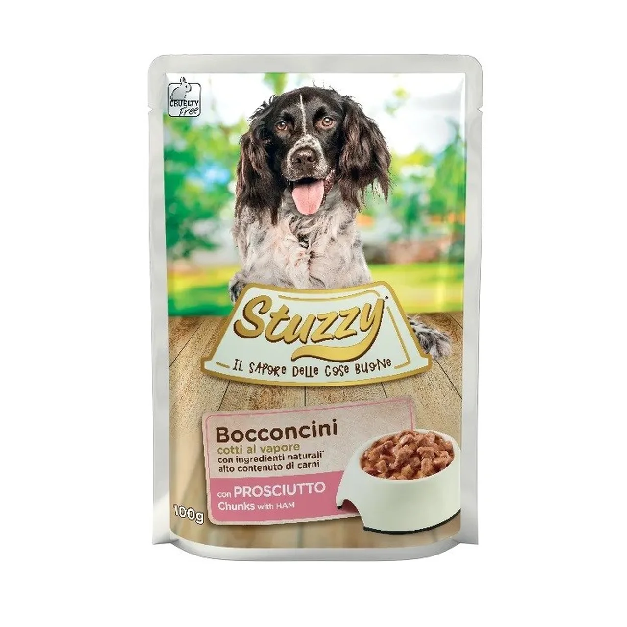 STUZZY Chunks with ham on täisväärtuslik märg koeratoit, mis sobib kõikidele tõugudele ja on mõeldud täiskasvanud koertele. Toode põhineb kvaliteetsetel looduslikel koostisosadel ning tagab, et sinu lemmik saab igapäevaselt maitsva ja tasakaalustatud toidukorra. Pakendatud mugavasse 100 g kotti, on toit gluteenivaba, ilma kunstlike värvainete, säilitusainete ja sojata. Valmistatud aurutatud meetodil, et säilitada maitse ja toiteväärtus.
