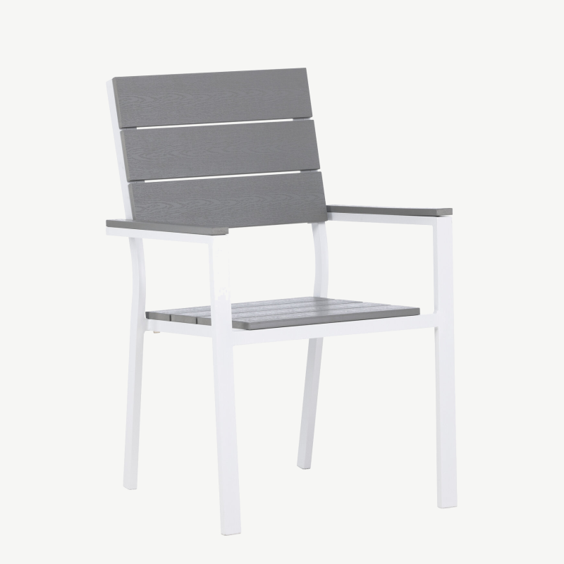 Loo oma aeda või terrassile kaasaegne ilme hall-valge alumiiniumist aiatooliga Levels. Selle minimalistlik ja sirgjooneline disain sobib ideaalselt põhjamaise stiiliga, pakkudes nii esteetilist kui ka praktilist lahendust õuemööbliks. Tooli tugev raam on valmistatud ilmastikukindlast alumiiniumist, mis tagab pikaajalise vastupidavuse välitingimustes.