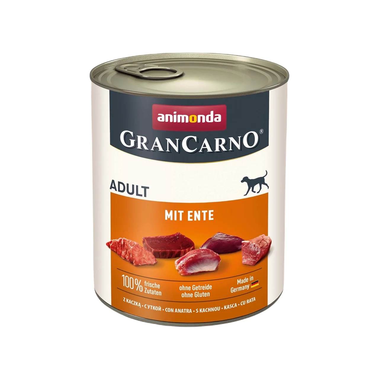 Animonda GranCarno Adult with Duck on täissööt, mis sobib igat tõugu täiskasvanud koertele. Selle põhimaitseks on pardiliha ning toit on valmistatud 100% värskest lihast. Koostis ei sisalda teravilja, gluteeni, soja, suhkrut ega kunstlikke värv- ja säilitusaineid, pakkudes koerale loomulikku maitset. See sobib üldise tervise toetamiseks ning ka tundliku seedimisega lemmikutele.