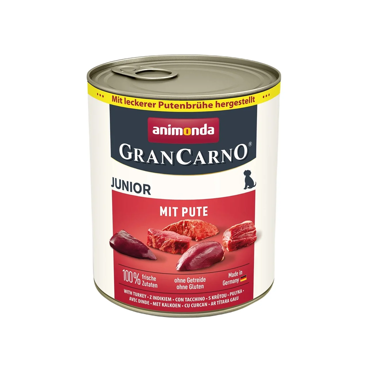Animonda GranCarno Junior Turkey 800g on gluteeni- ja teraviljavaba märgtoit kutsikatele, mis sisaldab kvaliteetset kalkuniliha ja sobib kõigi tõugude kasvuperioodiks.