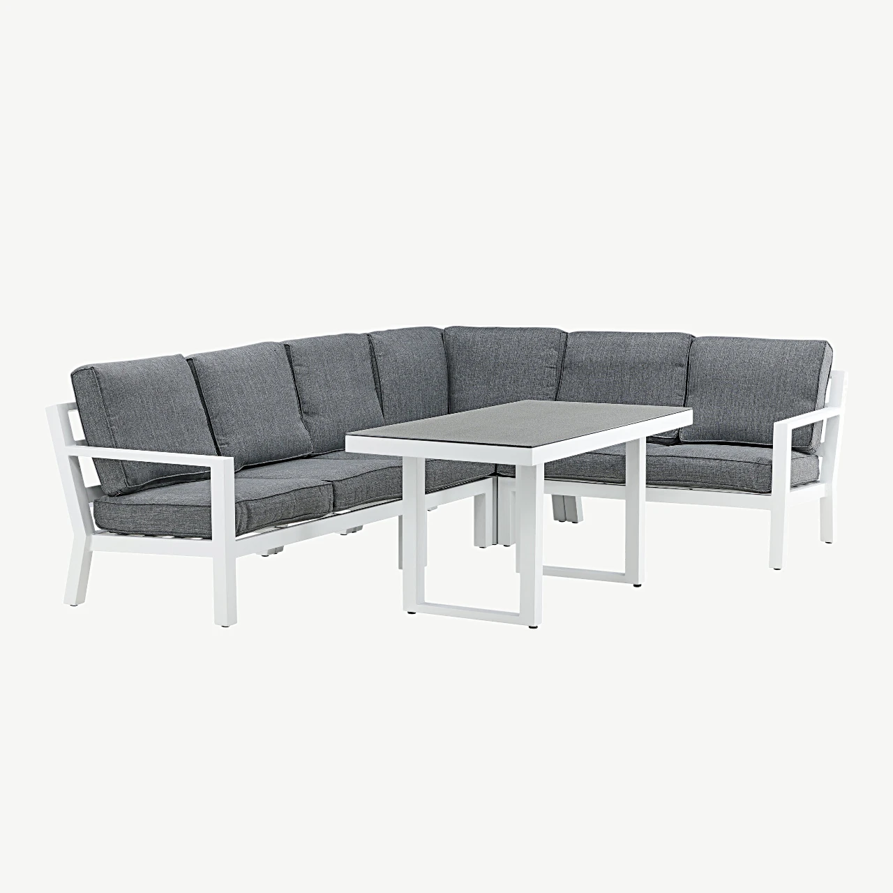 Kaunista oma terrassi või aianurk Barcelona valge aiadiivanikomplektiga ja loo kutsuv ning stiilne kohtumispaik perele ja sõpradele. See põhjamaise disainiga nurgadiivanikomplekt lisab igale õueruumile elegantsi ning mugavust, muutes selle suurepäraseks valikuks meie kliimasse.