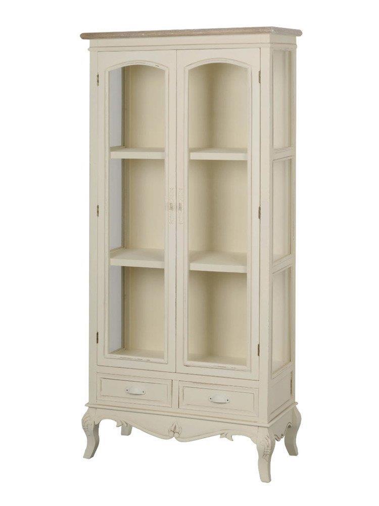 Rimini RI09 vitriinkapp elutuppa. See elegantne vitriinkapp toob elutuppa Provence’i stiili võlu, kombineerides kreemikat tooni ja heledat pruuni ülemist äärt. Vitriinkapi metallist karbikujulised käepidemed ja kumerad jalad lisavad sellele eripära ja stiili.