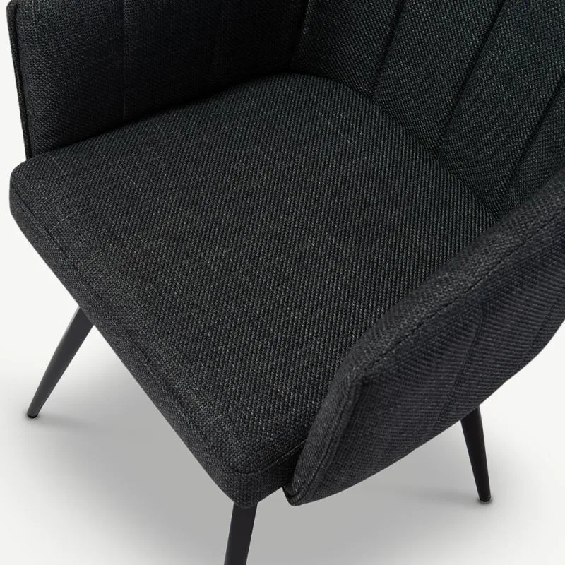 Selle tugitooli polsterdus on kaetud vastupidava ja pehme tumehalli kangaga, mille ribistatud disain lisab karakterit. Neutraalne, ent külluslik toon muudab tooli lihtsasti sobitatavaks erinevate sisustusstiilidega – olgu selleks modernne, minimalistlik või industriaalne interjöör. Tool on suurepärane valik nii söögilaudade äärde kui ka töö- või puhkealadesse.