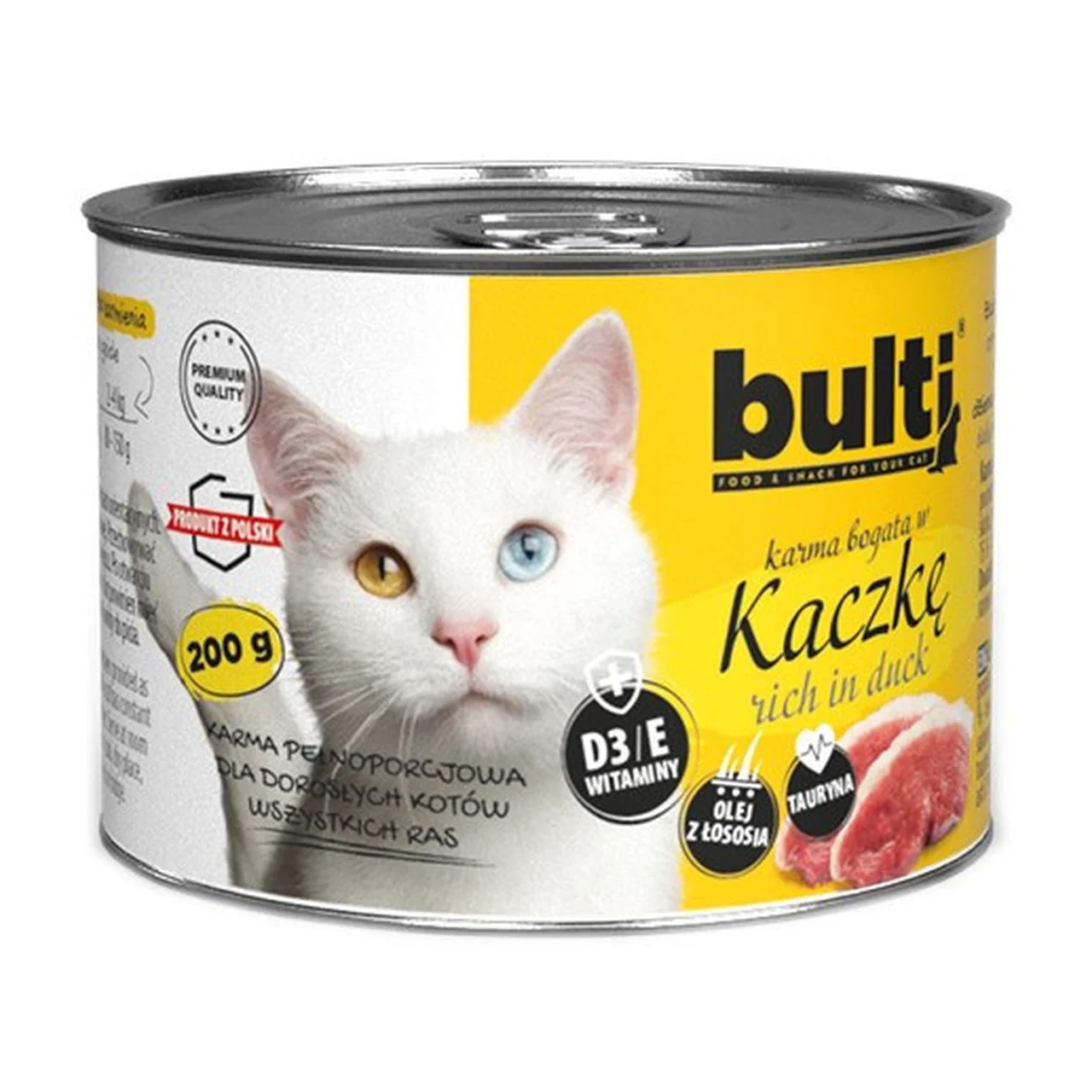 BULT Rich in Duck on täissööt täiskasvanud kassidele, mis pakub kvaliteetset pardiliha igapäevaseks toitmiseks. See märg kassitoit sobib kõikidele tõugudele ning on mõeldud kassidele, kellel puuduvad spetsiifilised toitumisvajadused. Toode on gluteeni-, soja- ja suhkruvaba ning ei sisalda kunstlikke värvaineid, aidates hoida teie kassil looduslähedase ja tervist toetava menüü.