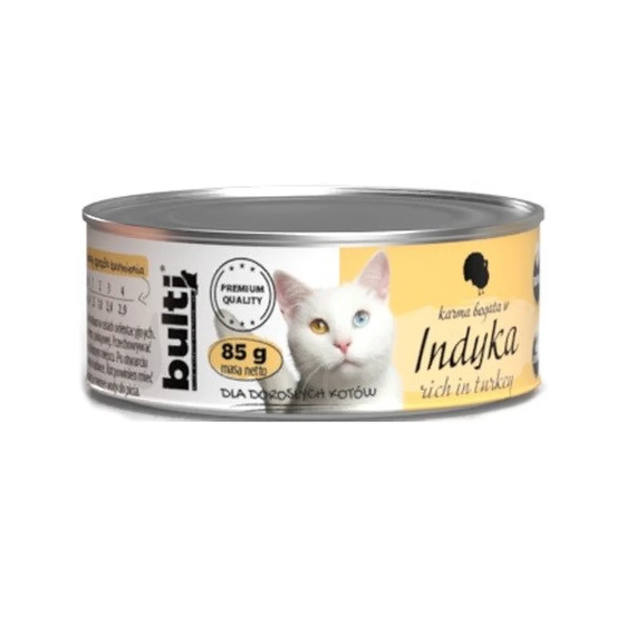 Gluteenivaba BULTI kalkunilihaga märgtoit täiskasvanud kassidele, 85 g konservis, sobib igapäevaseks toitmiseks kõigile tõugudele.