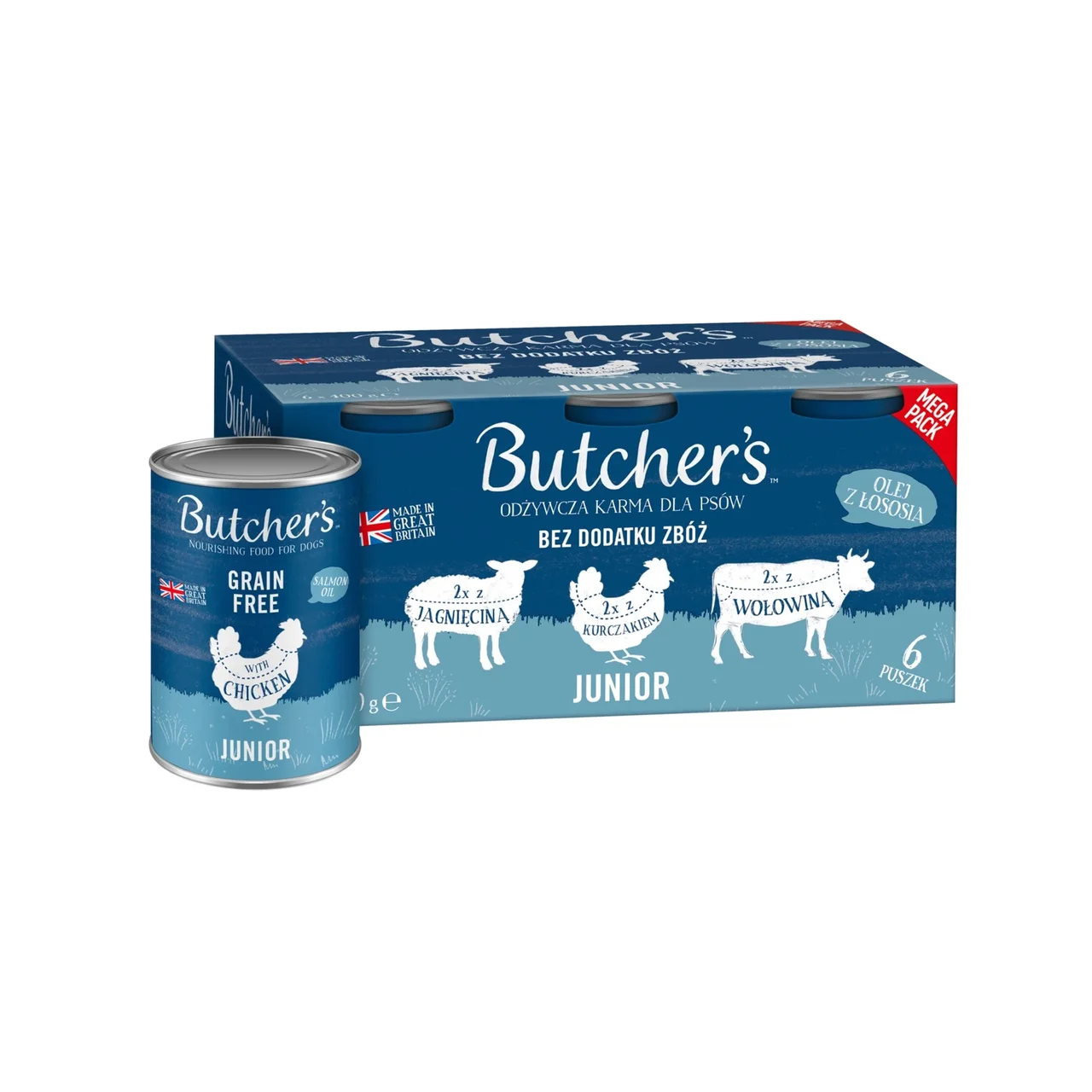 Butcher’s Original Junior Mega pack mix on täisväärtuslik märgtoit kõikidele kutsikatele, olenemata tõust või suurusest. Tegemist on kvaliteetse gluteenivaba koeratoiduga, mis sisaldab rikkalikult liha – kana, veiseliha ja lambaliha. Toode sobib igapäevaseks toitmiseks, tagades kasvuperioodil kutsikale vajalikud toitained ning toetades üldist heaolu.