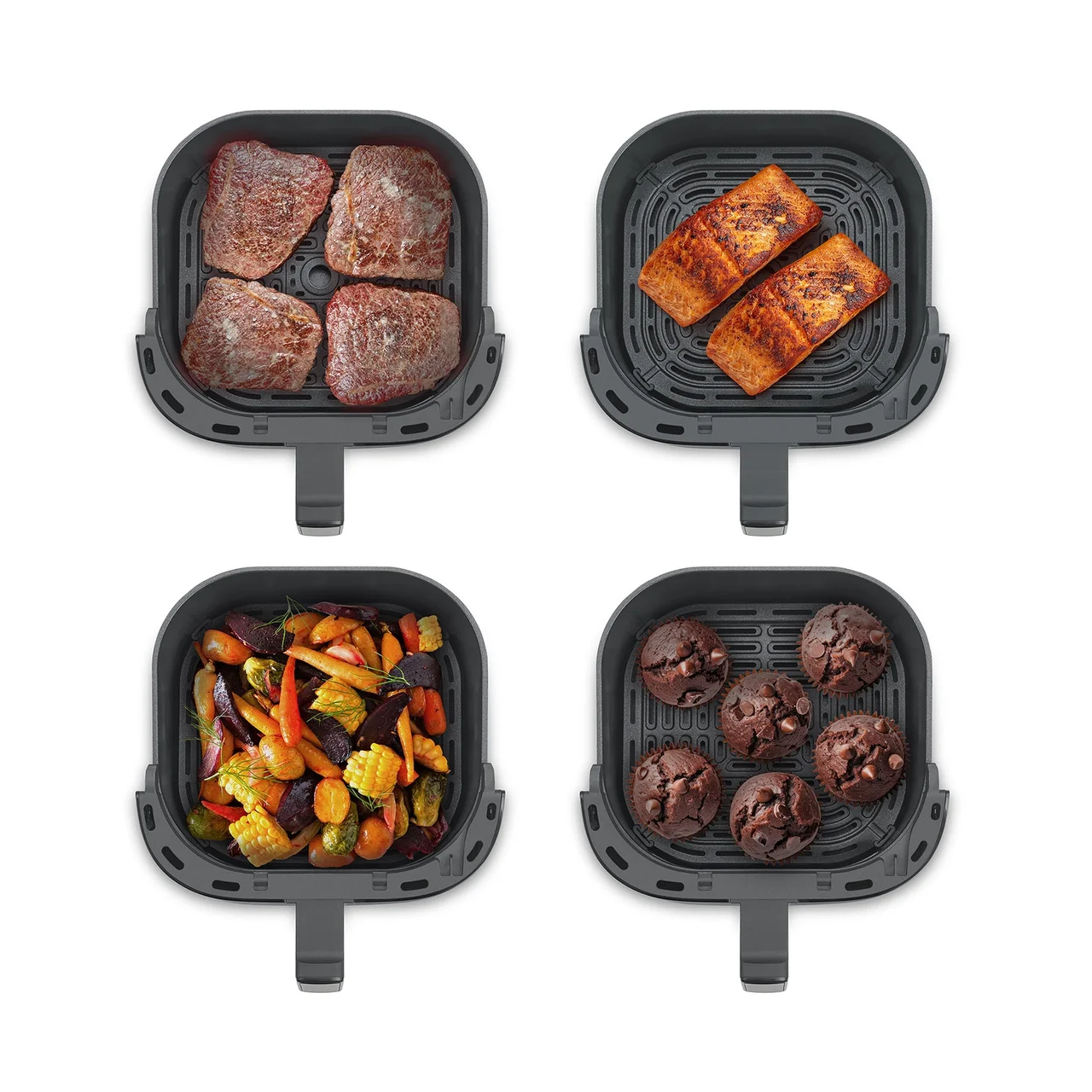 Aseta fritüür stabiilsele ja kuumakindlale pinnale. Vali retseptile sobiv programm või seadista temperatuur ning aeg käsitsi puutetundliku ekraaniga. Lisa koostisosad korvi (soovi korral kasuta vaid tilk õli), sulge korv ning jälgi valmistamist klaasist vaateaknaga. Küpsetamise lõppedes eemalda korv “cool touch” käepidemest ja serveeri roog. Eemaldatav korv ja rest on nõudepesumasinas pestavad, mis teeb hoolduse lihtsaks.