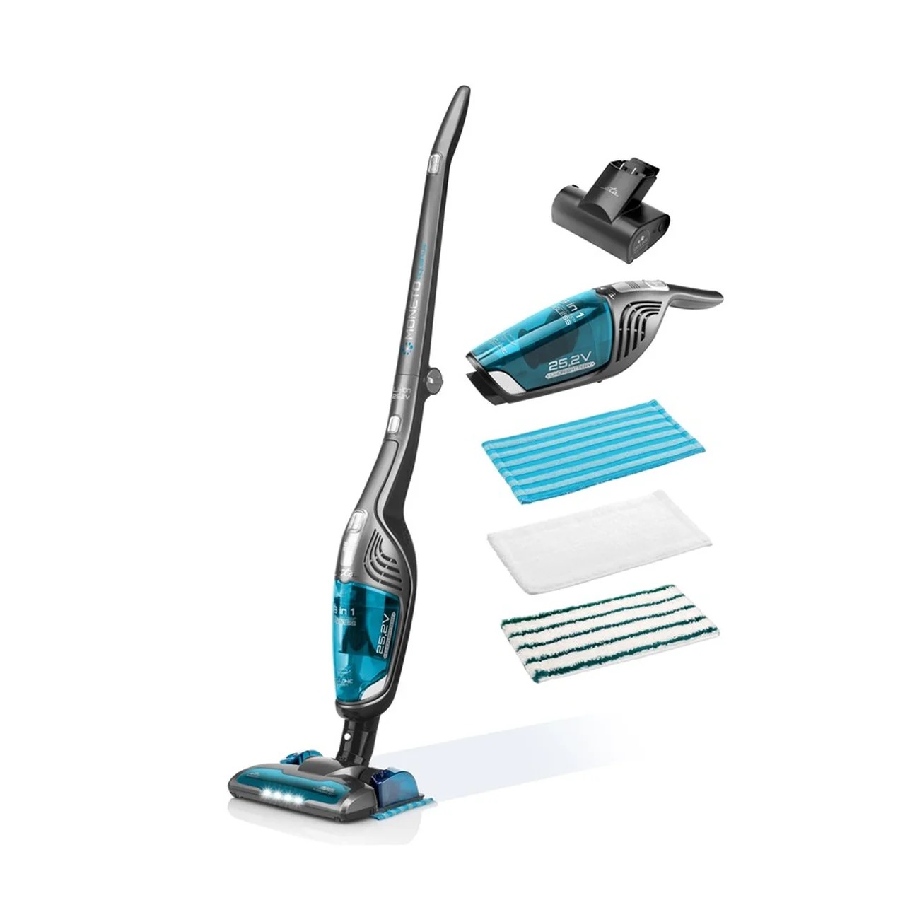 Enne kasutamist tuleb seade täis laadida. Puhastamisel vali vastavalt vajadusele kas tavaline või tugevam režiim. Kuivpuhastamiseks kasuta standardset põrandaharja, märgpuhastuseks paigalda mopitarvik ja täida veeanum. Tolmu- ja veemahutid tuleb pärast igat kasutuskorda tühjendada ning puhastada, filtrit pesta regulaarselt. LED-tuli võimaldab hästi näha tumedates kohtades. Tänu “Click & Cleaning” süsteemile on tarvikute vahetamine ning hooldus kiire ja lihtne.