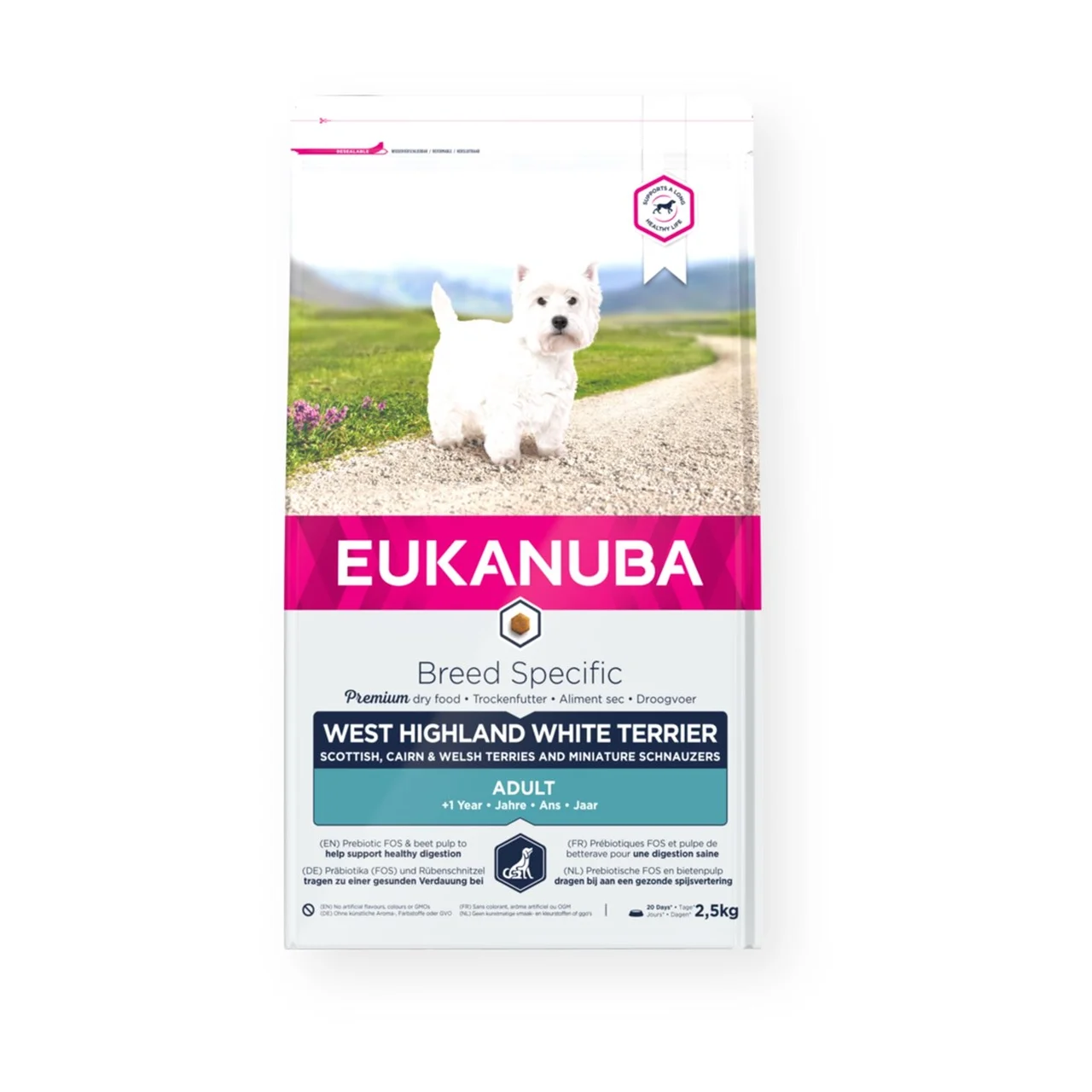 Eukanuba Breed Specific 2,5 kg kanaliha-koeratoit väikest tõugu täiskasvanud West Highland White terjerile