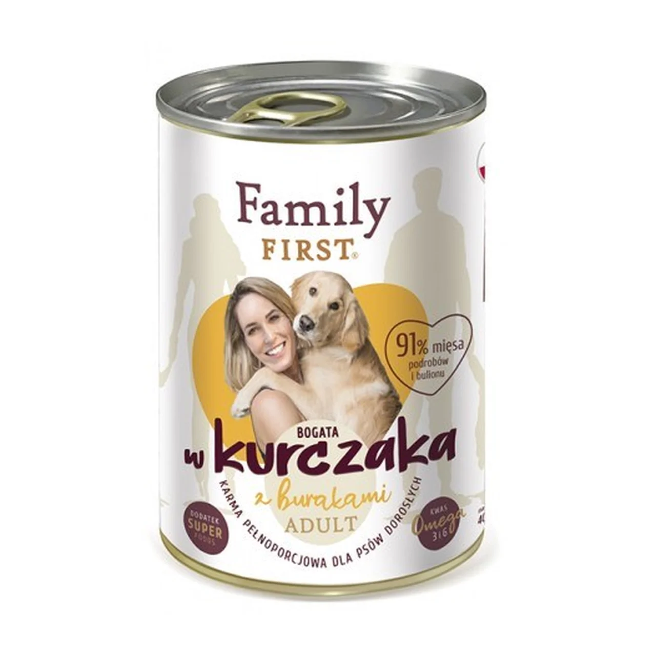 Family FIRST Adult Chicken with beets märgtoit on kvaliteetne täissööt igas suuruses ja tõust täiskasvanud koertele. Toodet iseloomustab kõrge looduslik lihasisaldus ning kunstlike lisandite, gluteeni, soja ja suhkru puudumine, mistõttu sobib see ka tundliku seedimisega koertele. Kana-peedi märgtoit on pakendatud praktilisse 400 g konservi, mis tagab värskuse, lihtsa serveerimise ja mugava säilitamise. Family FIRST toitude eesmärk on toetada üldist tervist – igapäevane toitmine on lihtne ja mugav kõigile koeraomanikele.