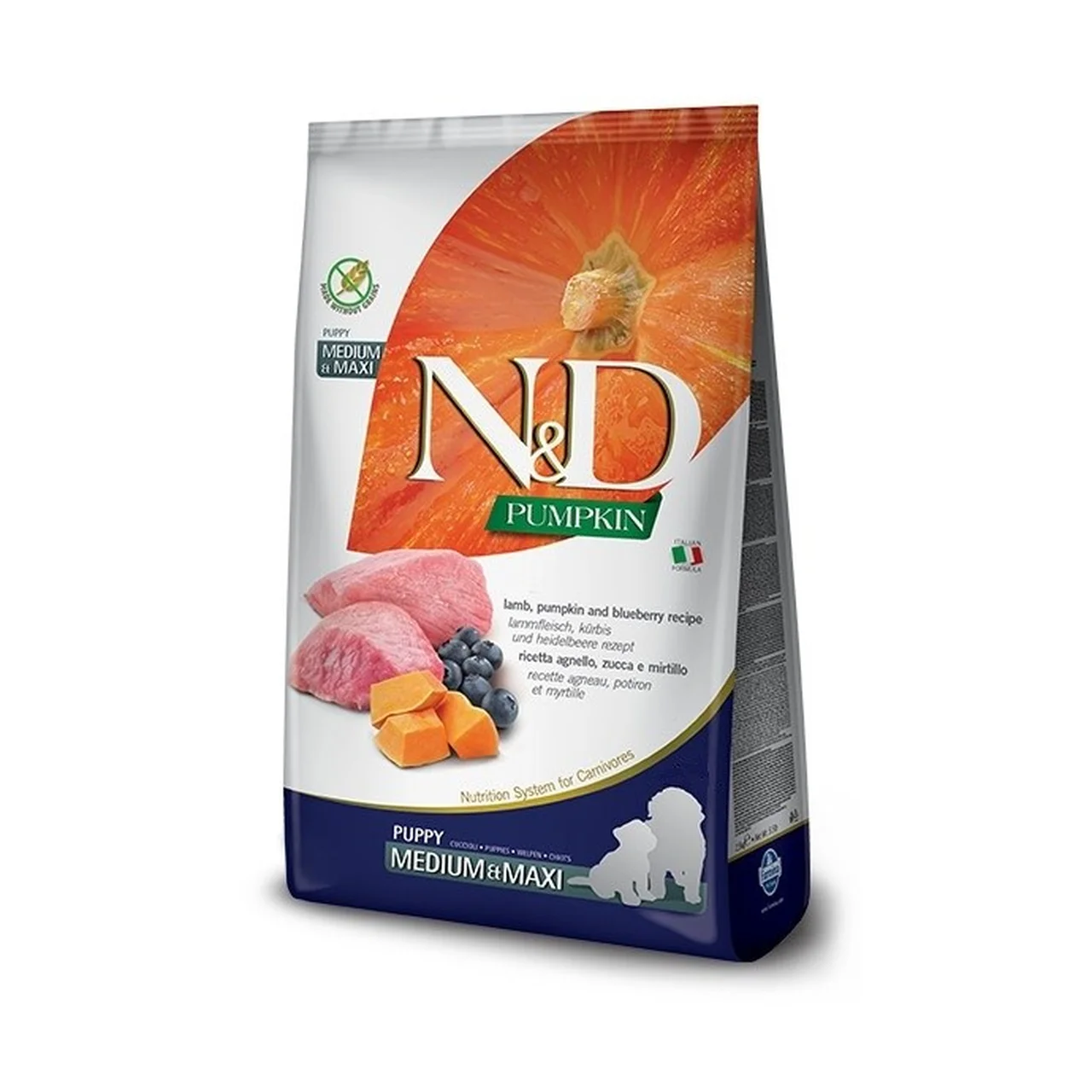 Farmina N&D Pumpkin 2,5 kg lambaliha ja mustikaga teraviljavaba kutsikatoit keskmistele ja suurtele tõugudele