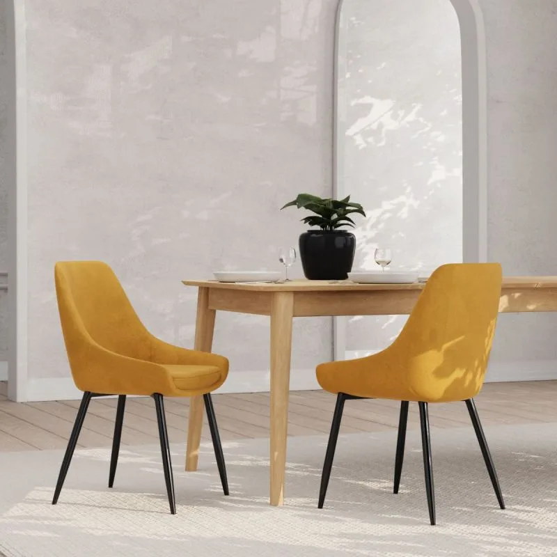 Fleur söögitool ühendab endas elegantsi ja mugavuse, pakkudes kaunist interjööri täiendavat elementi. Kollane sametpolster loob luksusliku ja pehme ilme, samas kui musta kattega metallist jalad lisavad kaasaegset kergust ja vastupidavust. See tool on ideaalne valik nii söögituppa kui ka elutuppa, pakkudes stiili ja funktsionaalsust üheskoos.
