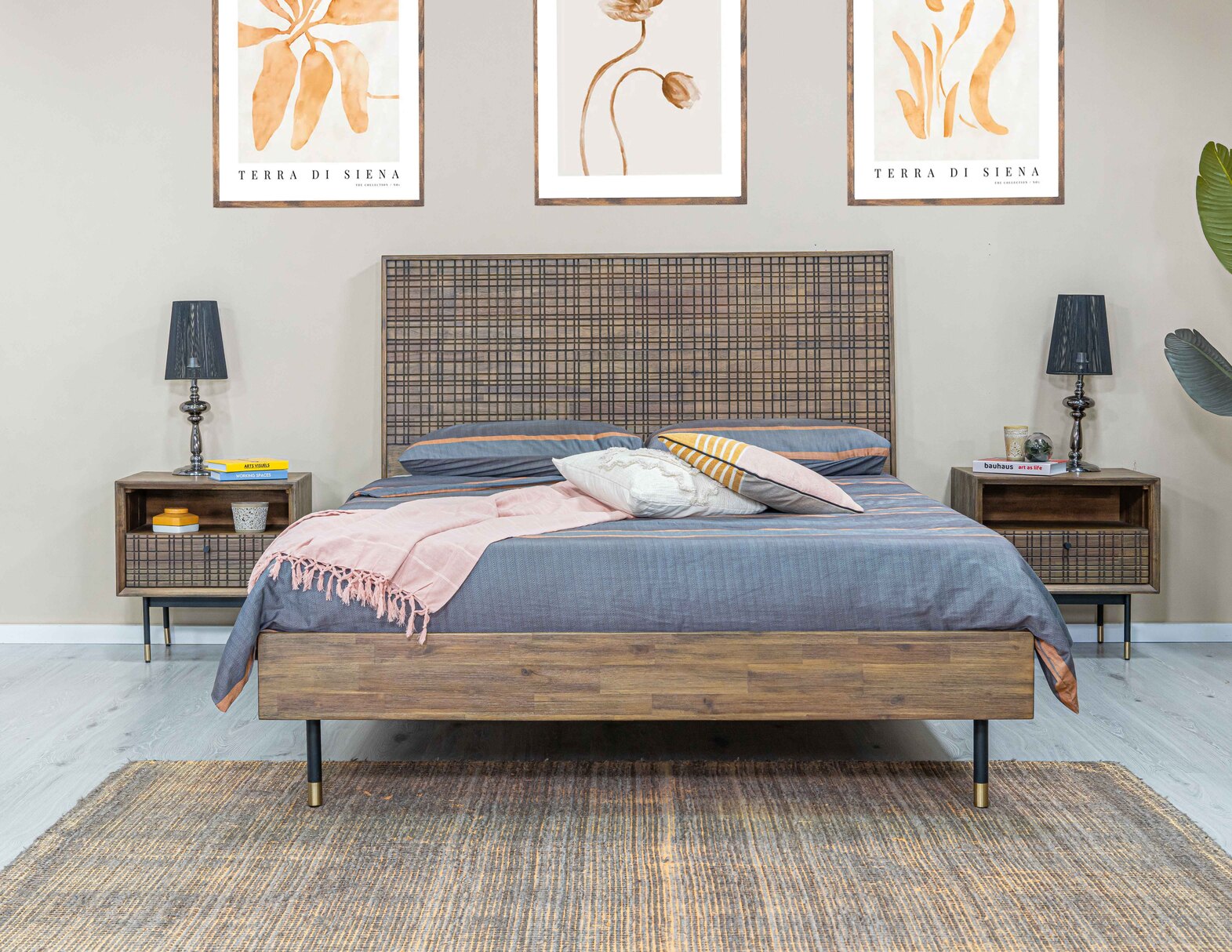 Maze kollektsiooni voodiraam on valmistatud kvaliteetsest akaatsiapuidust ja viimistletud vineeriga, mis tagab vastupidavuse ja ajatu ilu. Metallist jalad lisavad modernset aktsenti ning kindlustavad stabiilsuse. Voodiraami hele pruun toon toob esile puidu loomuliku ilu ja sobib erinevatesse sisekujundusstiilidesse. Öökapid pakuvad mugavat hoiuruumi, et hoida vajalikud esemed käeulatuses.