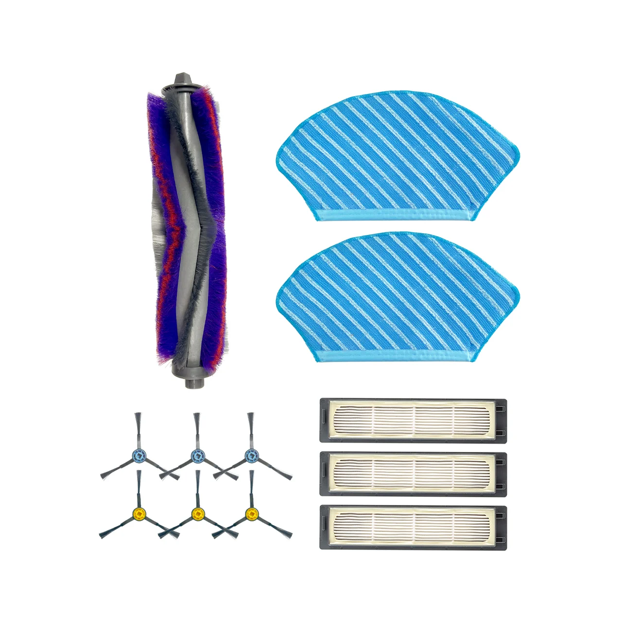 Külgharjad ja põhihari tuleks vahetada, kui harjased on kulunud või deformeerunud – vahetus toimub käsitsi ja ei vaja tööriistu. HEPA filtreid soovitatakse puhastada iga nädal ja vahetada mõne kuu järel, et säilitada filtreerimise tõhusus. Mopilapid kinnitatakse roboti veepaagi külge ning tuleks pärast igat kasutuskorda pesta. Kõik komplekti kuuluvad osad on mõeldud kiireks ja lihtsaks paigaldamiseks ega nõua eriteadmisi.