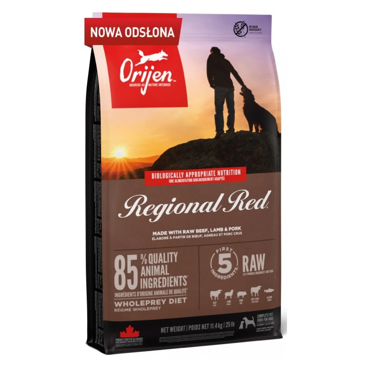 Orijen Regional Red on kõrgekvaliteediline kuivtoit, mis on loodud täiskasvanud koertele igast tõust ja suurusest. Toit põhineb rikkalikul veiselihal ja looduslikel koostisosadel, pakkudes koertele bioloogiliselt sobivat, tasakaalustatud ning valgurohket toitumist. Sobib üldise tervise toetamiseks ja lihasmassi arendamiseks ning on teravilja-, soja-, kana- ja gluteenivaba.