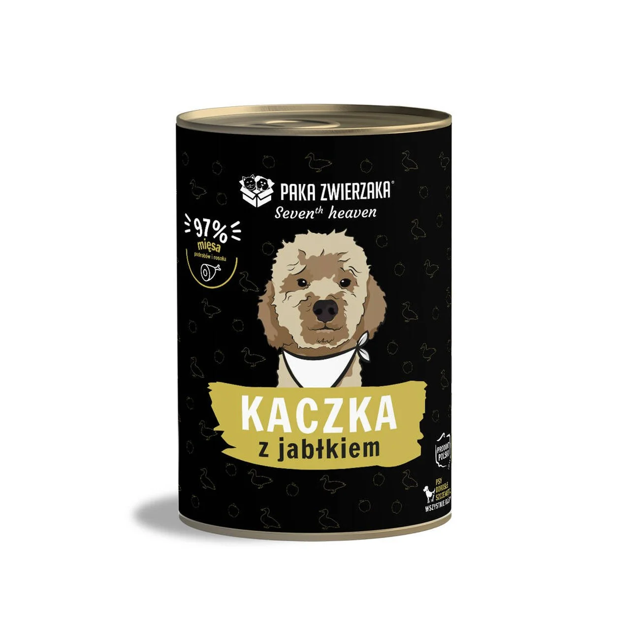 PAKA ZWIERZAKA Seventh Heaven pardilihaga märgtoit koertele on teraviljavaba täissööt täiskasvanud koertele, sisaldades 400 g kvaliteetset pardiliha ja õuna.