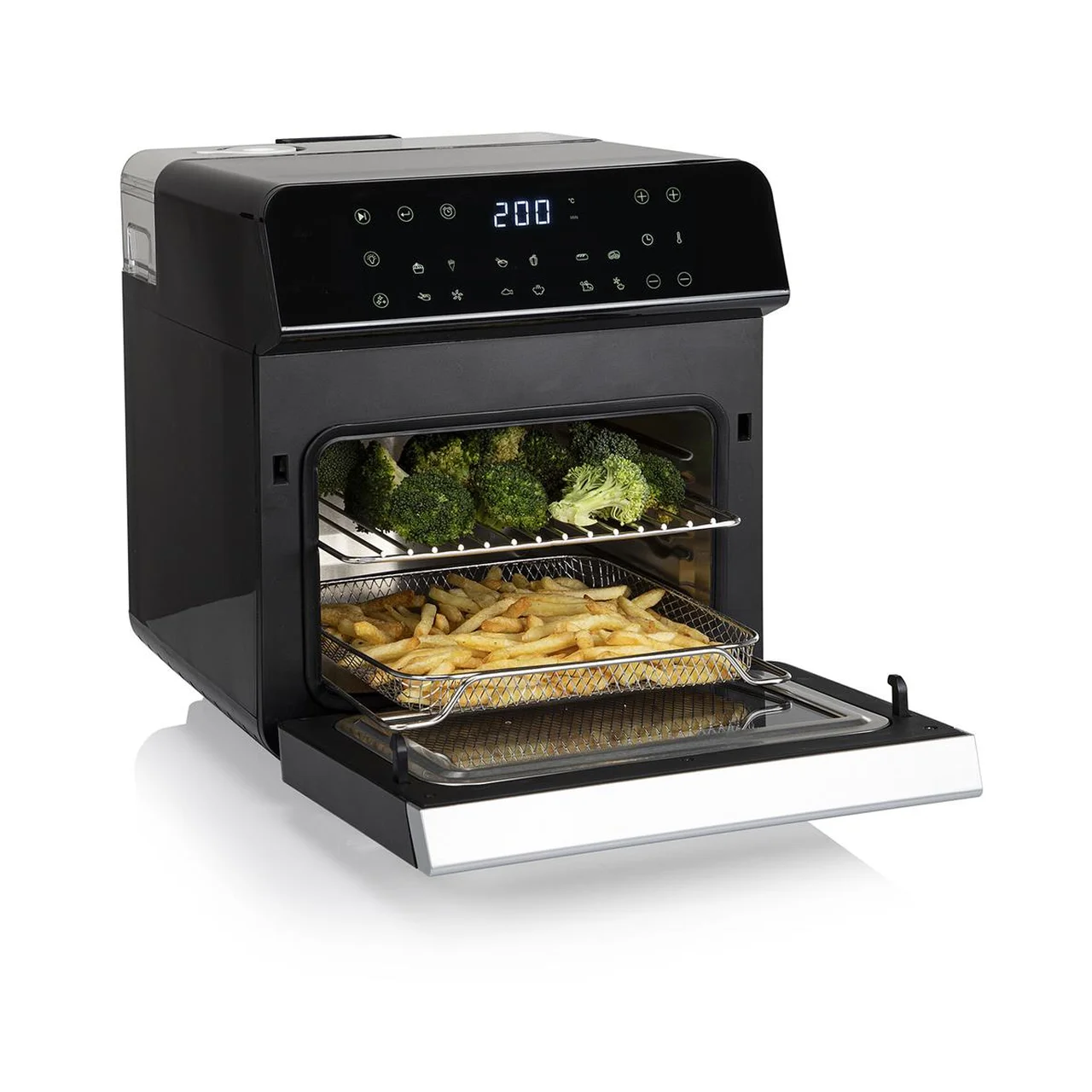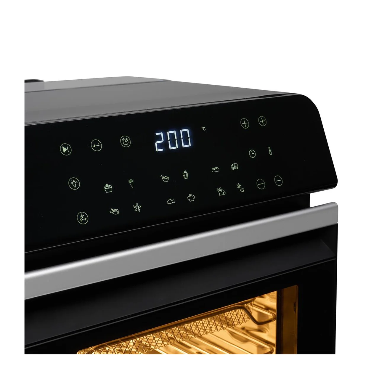 Princess Steam Airfryer Oven 182085 ühendab endas auru- ja kuumaõhufritüüri funktsioonid, võimaldades valmistada toite märgatavalt vähem rasva kasutades. Seade sobib suurepäraselt neile, kes soovivad kombineerida tervislikke aurutatud roogi ja krõbedaid kuumaõhufritüüri toite. 10-liitrine mahutavus muudab selle ideaalseks nii perele kui väiksemale seltskonnale ning seadme must minimalistlik disain sobitub enamikesse kaasaegsetesse köökidesse.