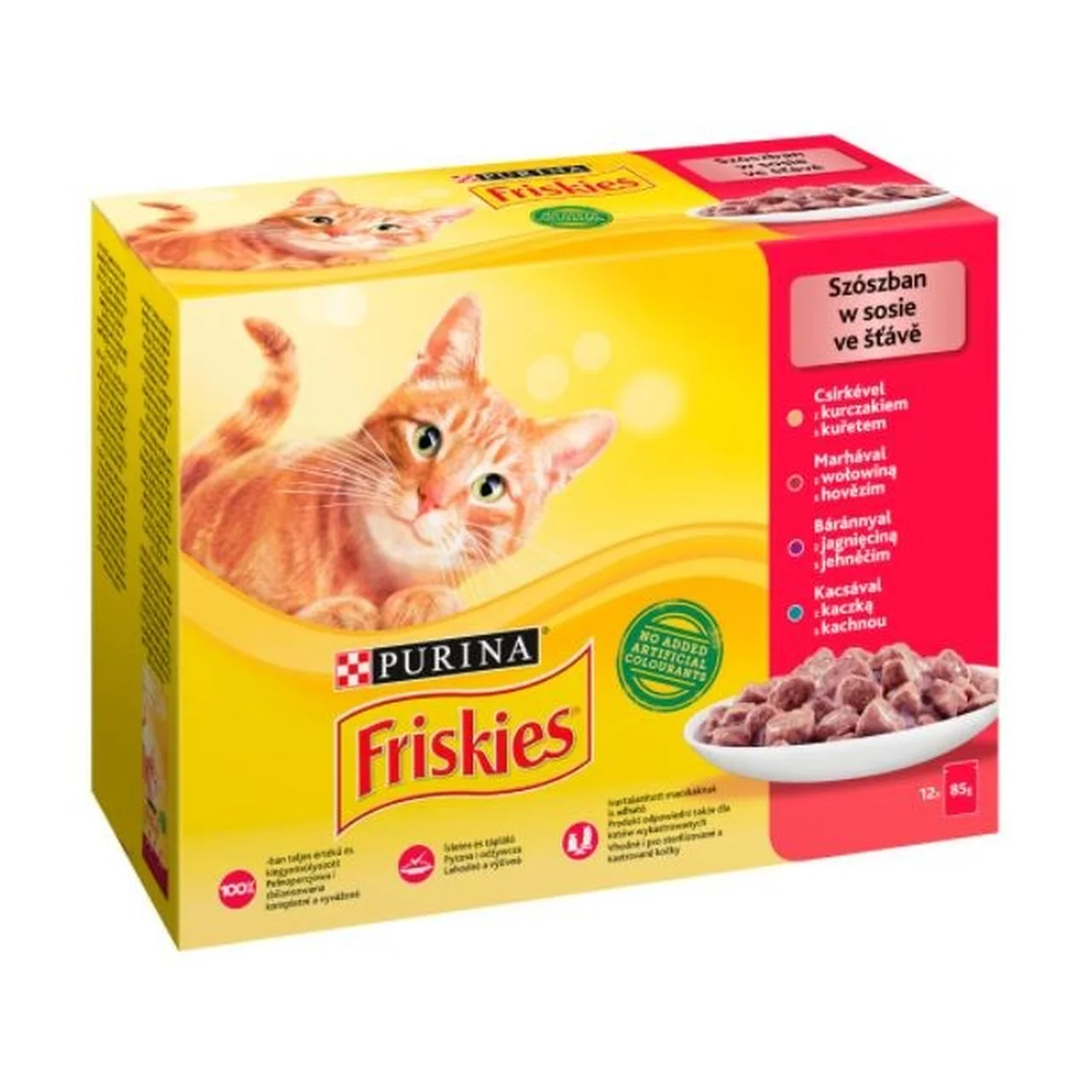 Purina Friskies Mix Meat 12 x 85 g märg kassitoit kanaliha, pardi, lambaliha ja veiselihaga täiskasvanud kassile
