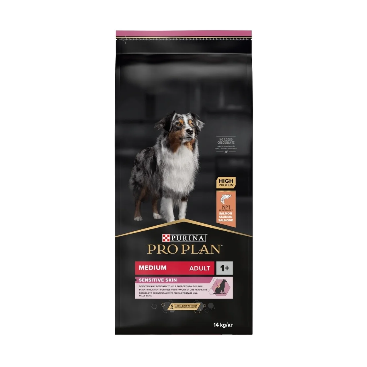 Purina Pro Plan Medium Adult Sensitive Skin lõhega kuivtoit on välja töötatud spetsiaalselt keskmist tõugu (10–25 kg) täiskasvanud koertele, kellel esineb tundlikkust naha või toidu suhtes. See kvaliteetne täissööt põhineb lõhel, mis on esimene ja peamine loomne valguallikas toidus. Tänu spetsiaalsetele koostisosadele ning oomega-3- ja oomega-6-rasvhapetele aitab see toit kaasa terve naha ja särava karvkatte säilitamisele, sobides ka koertele, kes ei talu kanavalku.