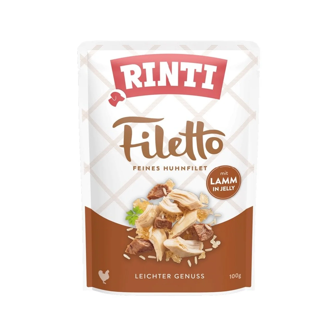 RINTI Filetto kanafilee lambaga on gluteenivaba märgtoit täiskasvanud koertele, mis sisaldab kvaliteetset kanafileed ja lambaliha mugavas 100 g pakendis.