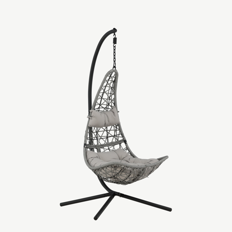 Komplekt sisaldab ka pehmet patja ja mugavat peaalust, mis tagavad veelgi suurema istumismugavuse. Lai ja sügav iste võimaldab lõõgastuda ning nautida värsket õhku täiel rinnal. Tänu hoolikalt valitud materjalidele on ripp-tool terrassile vastupidav ja ilmastikukindel, sobides suurepäraselt igapäevaseks kasutamiseks.