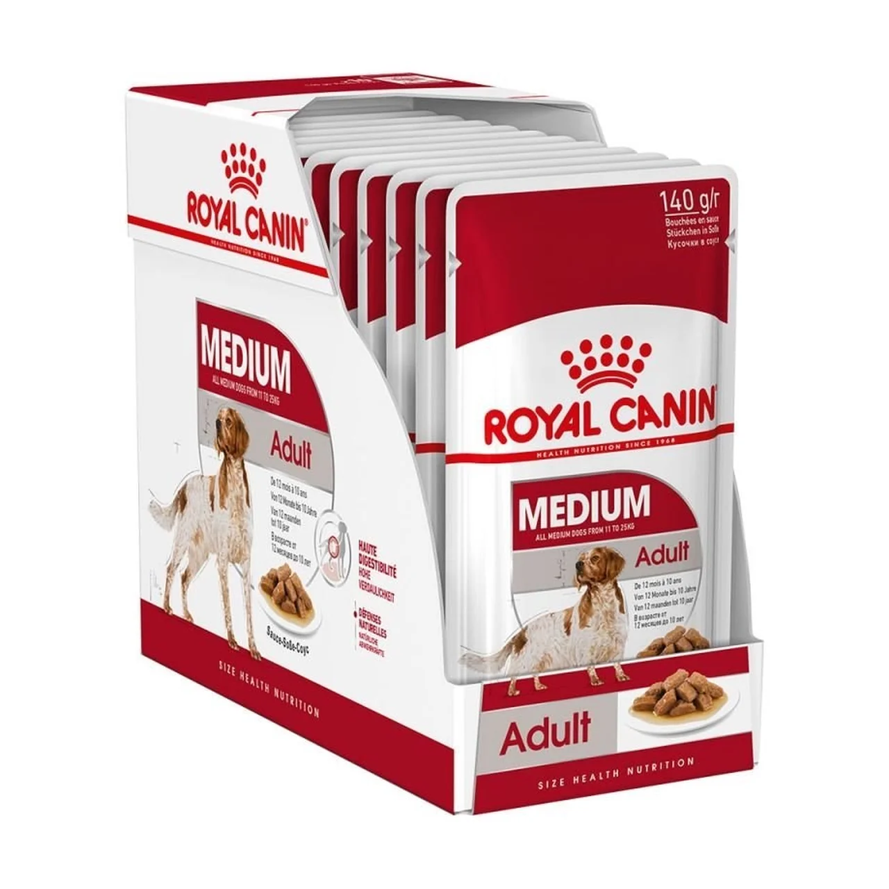 ROYAL CANIN SHN Medium Adult märgtoit sobib hästi täiskasvanud, mature keskmist kasvu koertele (11–25 kg), nagu border collie, beagle, puudel, cockerspanjel jt. Toode sobib igapäevaseks põhitoiduks, kui puuduvad spetsiaalsed toitumisvajadused.