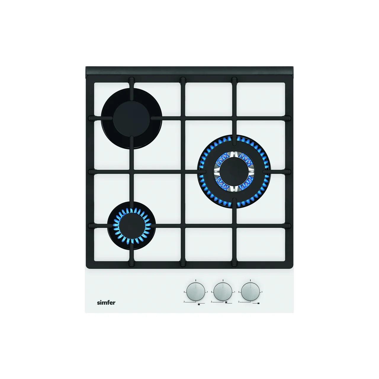 Simfer H4.305.HGSBB 45 cm valge klaaspinnaga gaasipliit 3 põletiga