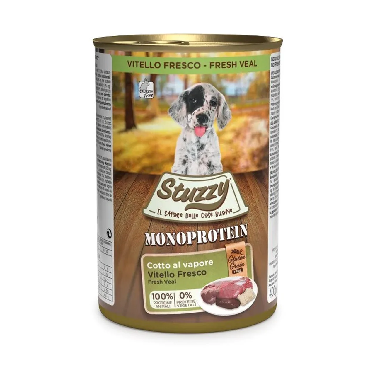 Stuzzy Monoprotein Puppy Veal on tasakaalustatud märgtoit, mis on loodud kõikidele kutsikatele, toetades nende arengut ja heaolu. Üksainus valguline koostis (vasikaliha) ning kvaliteetsed toorained sobivad ka tundliku seedimise ja allergiatega noortele koertele. Toode ei sisalda gluteeni, teravilja, soja, kunstlikke värvaineid ega säilitusaineid, olles ideaalne igapäevane toit kasvavale lemmikule.