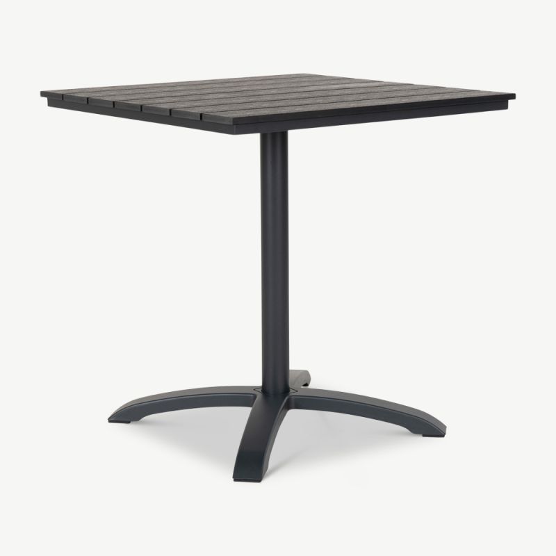 See ruudukujuline aiakohvilaud on varustatud elegantse halli polüetüleenist lauaplaadiga, mis on lihtsasti hooldatav ja ilmastikukindel. Mustad metallist jalad annavad lauakomplektile stabiilsuse ning lisavad modernset välimust. Timo aiakohvilaud on piisavalt kompaktne, et sobituda väiksematesse ruumidesse, kuid samas piisavalt avar, et pakkuda mugavust kuni kahele inimesele.