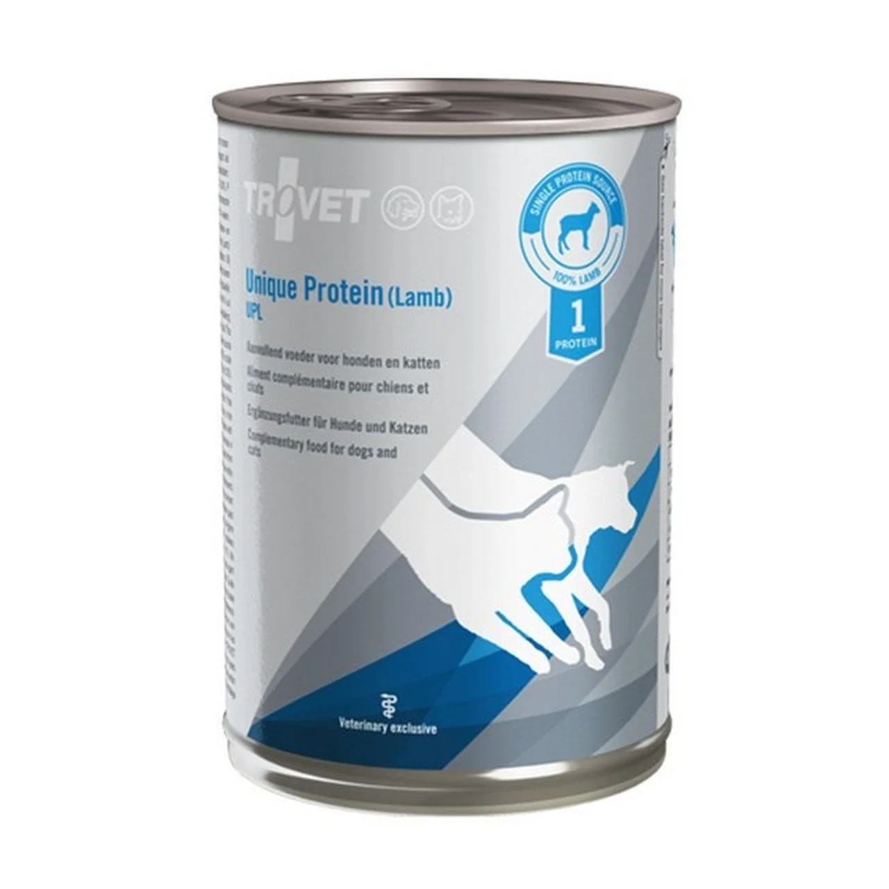 TROVET Unique Protein UPL lambaliha märgtoit on monoproteiinne säilitusainetevaba konserv koertele ja kassidele, sobib eriti hästi allergilistele lemmikutele ning toetab seedimist ja naha tervist.