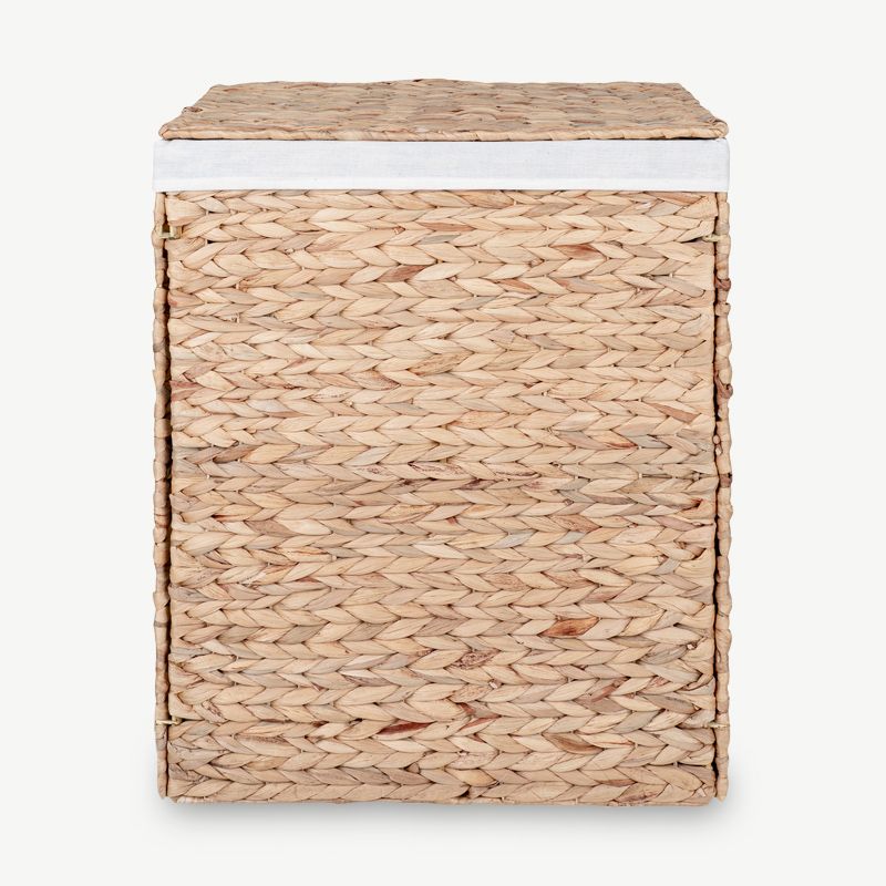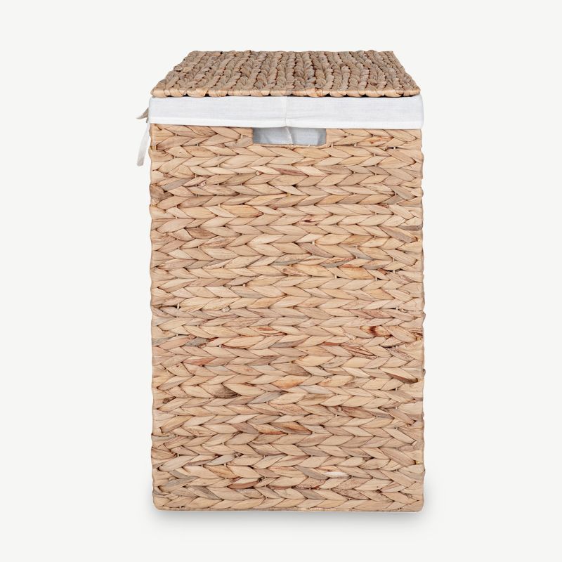 See kaunilt punutud pesukorv on valmistatud vesihüatsindist, mis on tuntud oma vastupidavuse ja keskkonnasõbralikkuse poolest. Tugev struktuur tagab, et korv peab vastu ka igapäevasele kasutusele, säilitades samal ajal oma elegantse välimuse.