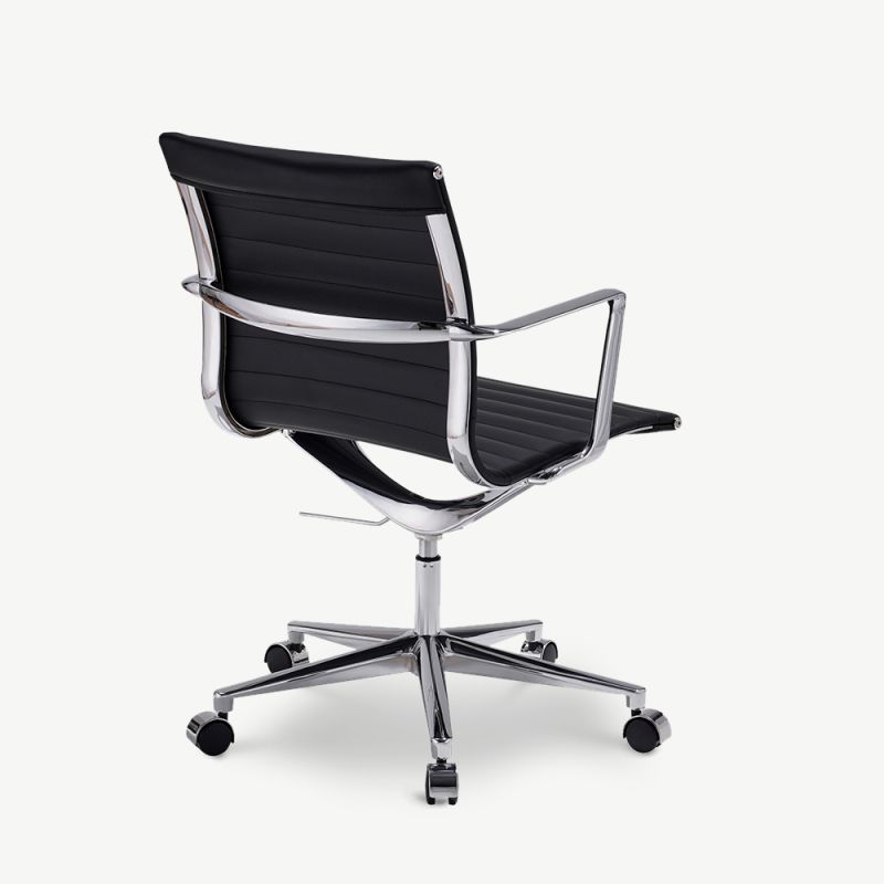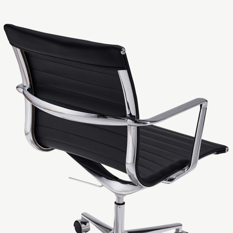 Tooli tugev raam ja jalad on valmistatud vastupidavast kroomitud roostevabast terasest, mis loob elegantse ja ajatu väljanägemise. Ribitud disain ja madal seljatugi annavad sellele kontoritoolile unikaalse iseloomu, muutes selle keskseks osaks igas kontoris.