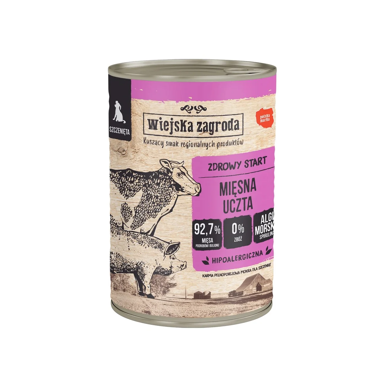 Wiejska Zagroda 400g gluteenivaba veiselihakonserv sobib noortele koertele ja on ideaalne valik allergilisele kutsikale, pakkudes kvaliteetset monoproteiinset märgtoitu ilma teravilja, suhkru ja sojata.
