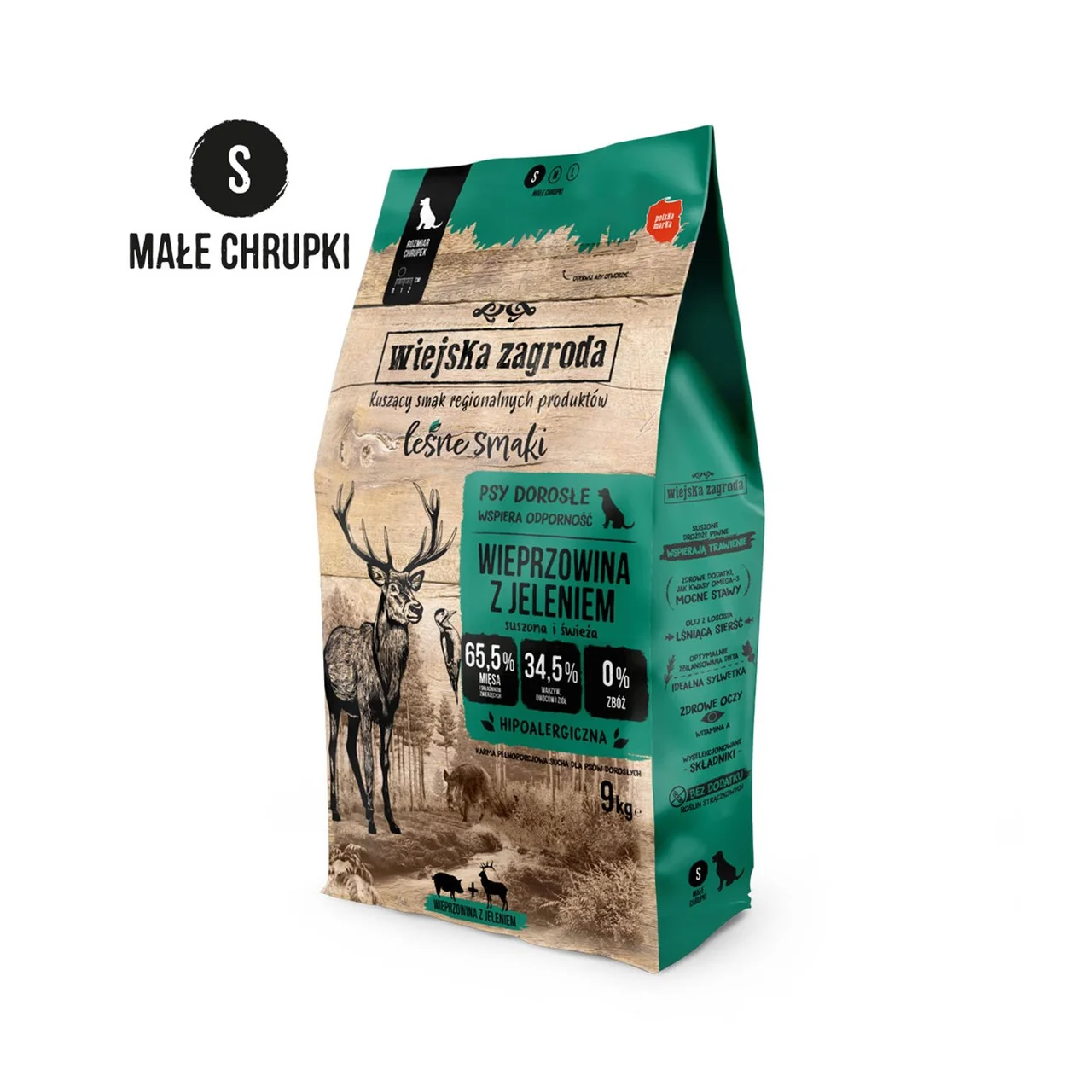 Wiejska Zagroda Forest Flavors S 9 kg gluteenivaba kuivtoit väikestele koertele, sealiha ja hirveliha